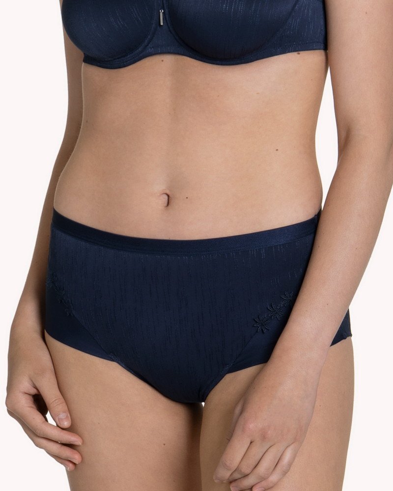 Kalhotky jsou vpředu zdobeny decentními 3D květy a v pase je tenká elastická páska pro příjemnější nošení.