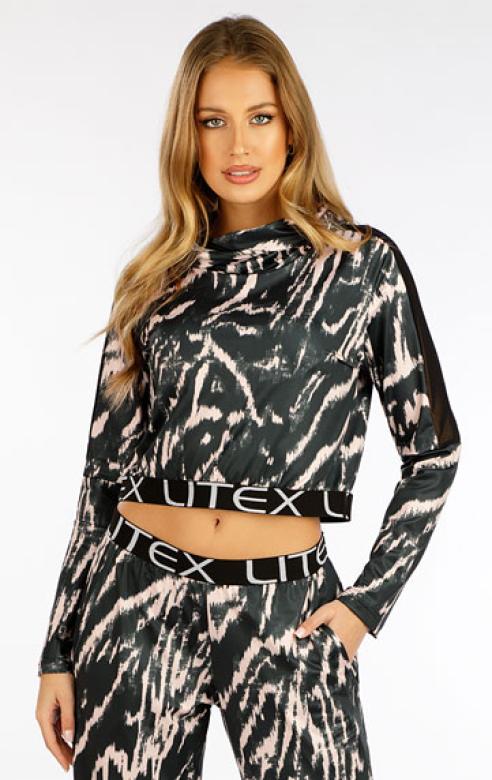 Triko má překřížeouá kapuci a v délce topu našitá široká LITEX guma.