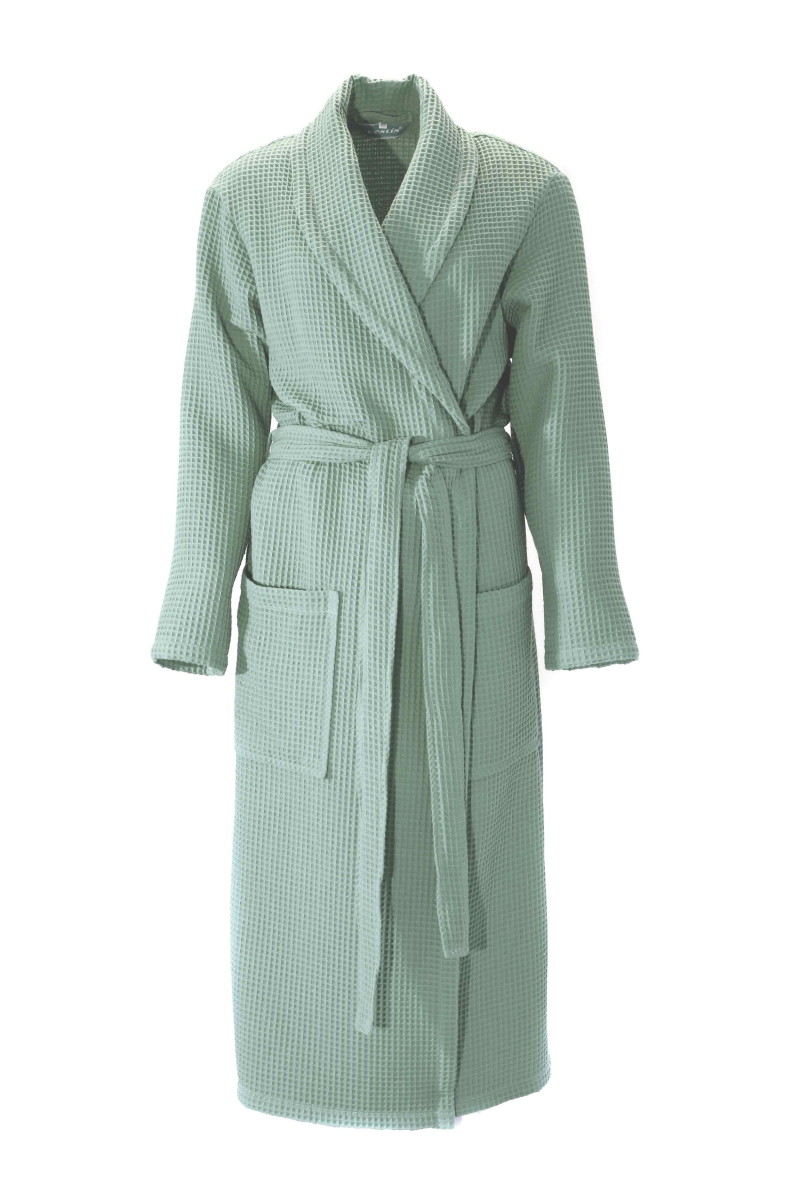 Unisex župan má šálový límec, 2 kapsy a v pase pásek.