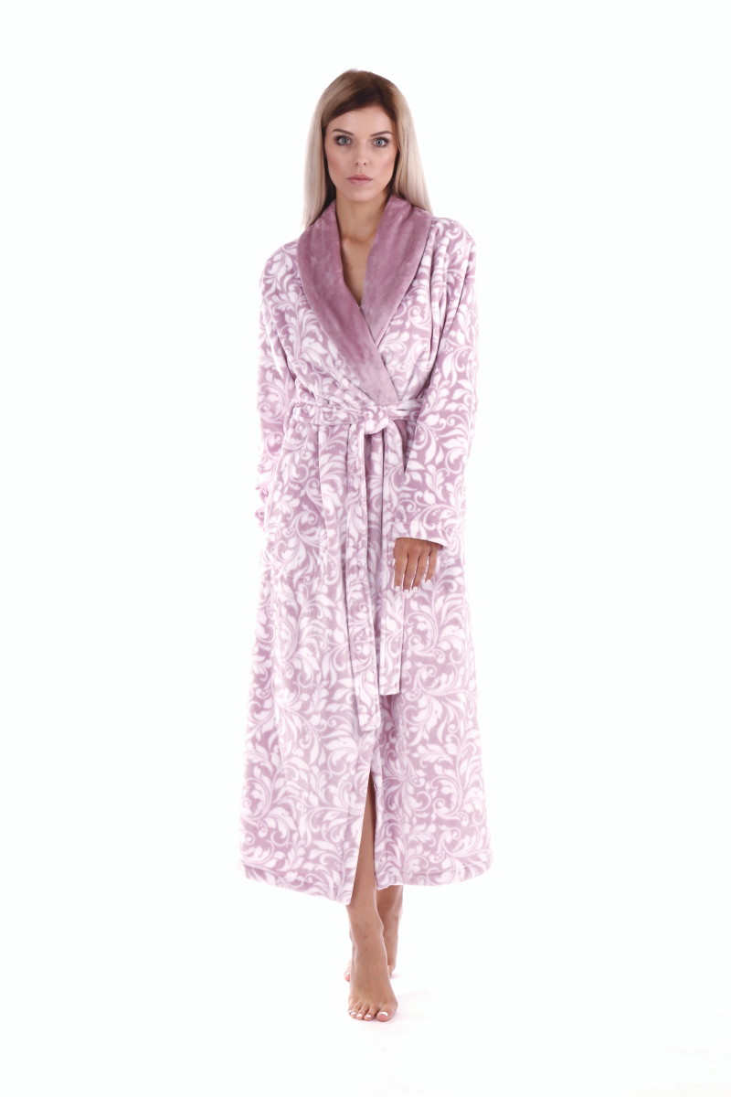 Dámský hebký dlouhý župan Vestis Flora v nádherné jemné fialkové barvě s šálovým límcem.