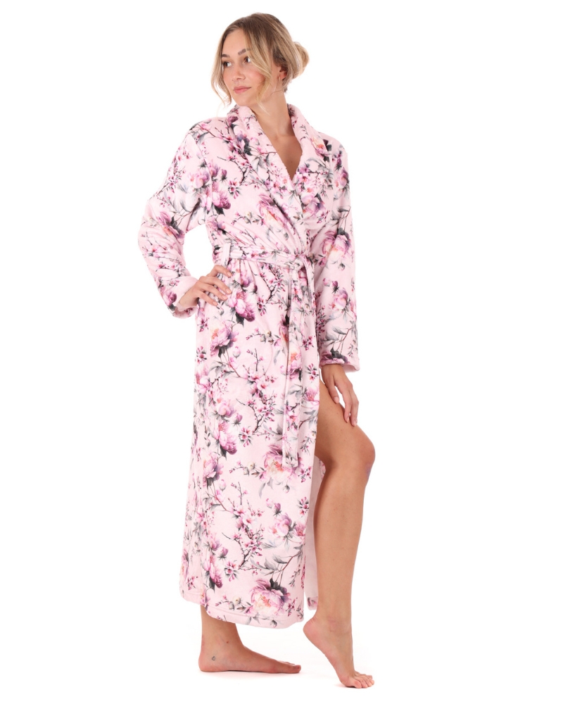 Překrásný květovaný dámský župan z limitované kolekce Toya v jemném růžovém odstínu.