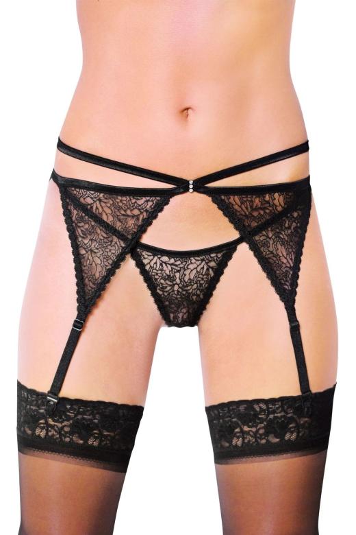 Dámský podvazkový pás je vyroben z krajky s květinovým motivem.