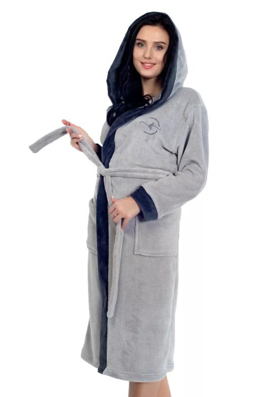 elegantní a hřejivý dámský župan 20685 šedý SPACE je navržen pro maximální pohodlí i styl. Župan disponuje kapucí a kontrastním grafitovým lemem, který vytváří zajímavý vizuální efekt. Praktické zapínání na pásek a dvě prostorné kapsy dělají z tohoto županu ideální volbu pro domácí využití i odpočinek po koupeli.