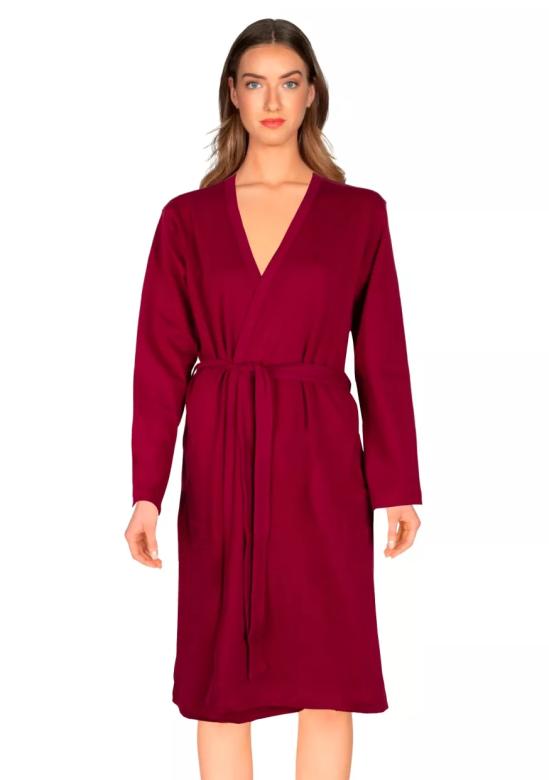 Elegantní dámský župan 2570/51 TARO je ideální volbou pro ty, kteří hledají pohodlí za každých okolností. Jeho hluboký bordó odstín přináší do domácího odpočinku šmrnc a zároveň klidnou atmosféru. Střih s límcem zvýrazňuje ženskou postavu, zatímco praktické zavazování v pase zajišťuje perfektní padnutí.