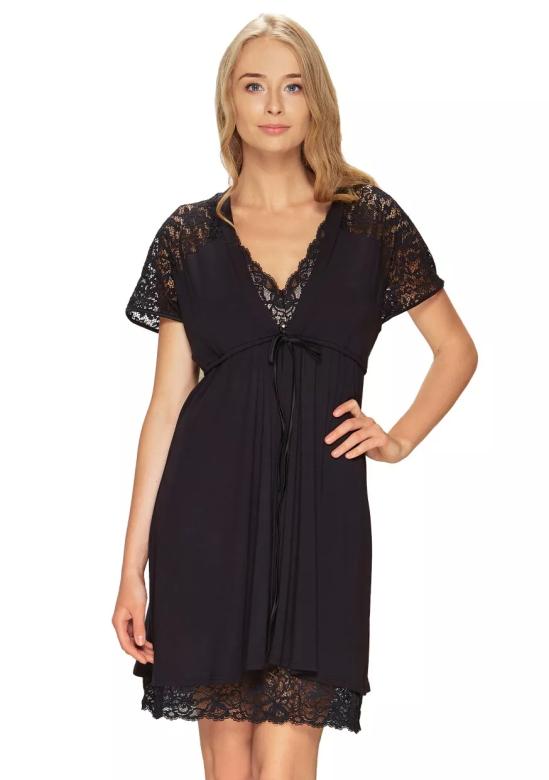 dámský župan 54/2-177V FABIO přináší elegantní kombinaci jednoduchosti a jemnosti díky svému jednobarevnému provedení a krásné květinové krajce zdobící záda a krátké rukávy. Župan je navržen se střihem s límcem a pod prsy je všitá šňůrka na zavázání, která umožňuje pohodlné přizpůsobení.