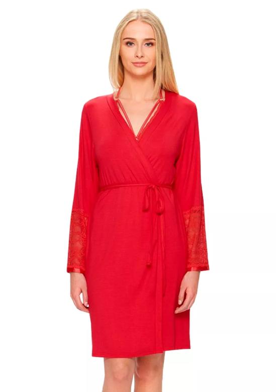 Dámský župan 54/2-219V/714 FABIO je elegantní a pohodlný kousek, který vám přinese pocit komfortu a ženskosti. Župan s límcem a dlouhými rukávy je zdobený jemnou krajkou na rukávech, což mu dodává jemný a stylový vzhled.