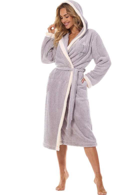 dámský župan s kapucí značky LandL. Župan je dlouhý pod kolena. Na bocích jsou zapuštěné kapsy. Župan lze okolo pasu uvázat páskem. Župan je velmi příjemný na dotek. Materiálové složení: 100% polyester