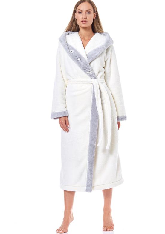 dámský župan s kapucí značky LandL. Župan je dlouhý pod kolena. Na bocích jsou zapuštěné kapsy. Župan lze okolo pasu uvázat páskem. Župan je velmi příjemný na dotek. Materiálové složení: 100% polyester