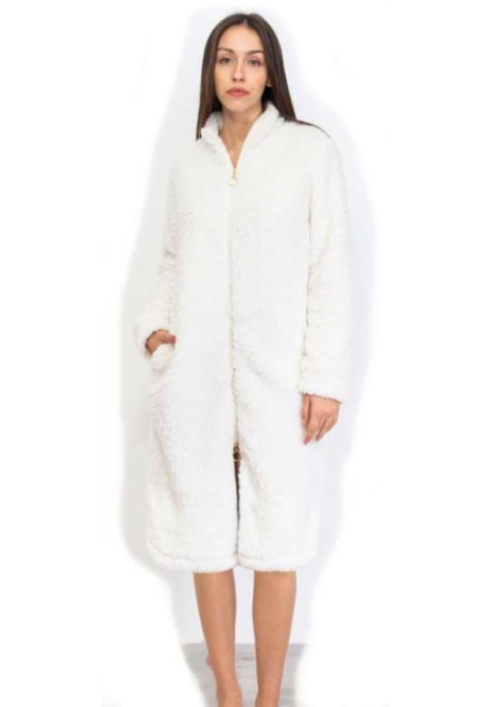 Huňatý župánek se zapínáním na zip je velmi hřejivý a jistě Vás zahřeje v zimních měsících.