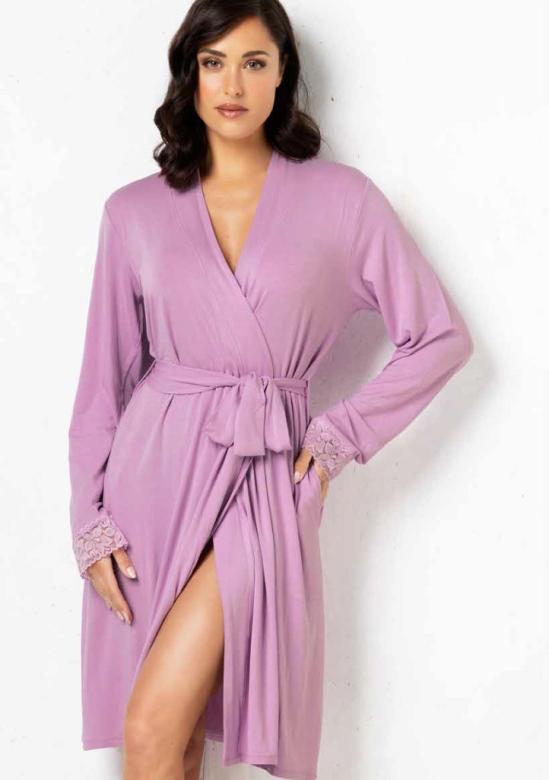 Dámský župan Veronica Verde představuje dokonalé spojení pohodlí a elegantního designu. Je vyroben z kvalitního materiálu s vysokým podílem viskózy, která je mimořádně jemná, prodyšná a příjemná na dotek. Díky tomu je župan ideální jak pro ranní chvíle, tak i pro večerní relaxaci. Rukávy jsou zakončeny jemnou krajkou, která dodává županu romantický a ženský nádech. Elegantní střih doplňuje klasické zavazování na pásek, které umožňuje přizpůsobení postavě a zajišťuje maximální komfort při nošení. Délka ke…