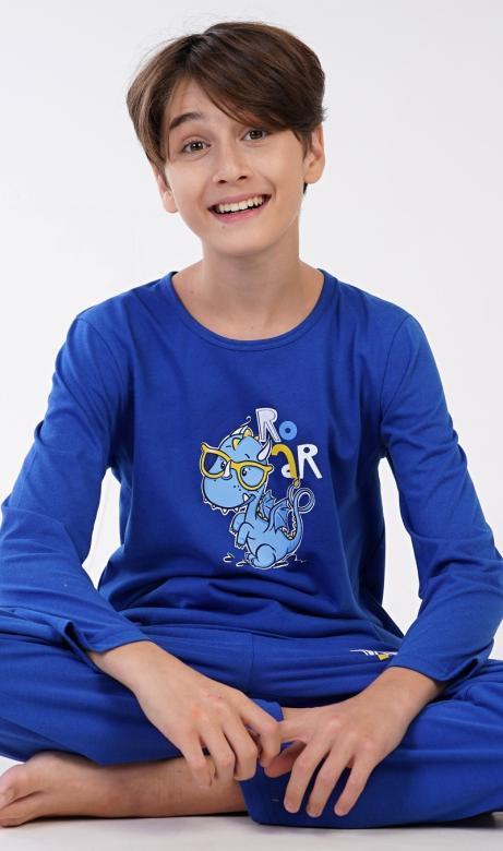 Kvalitní bavlněné dětské dlouhé pyžamo Dinosaurus.