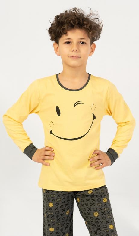 Roztomilé dětské pyžamo dlouhé Patrik s motivy smajlíků.