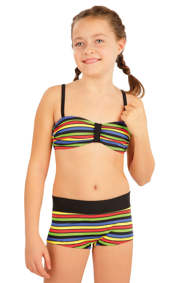 Veselé pruhované dívčí plavky Litex ve veselém barevném vzoru.
