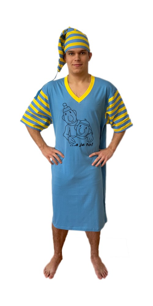 Veselá pánská noční košile s čepicí Pat a Mat s motivem obrys.