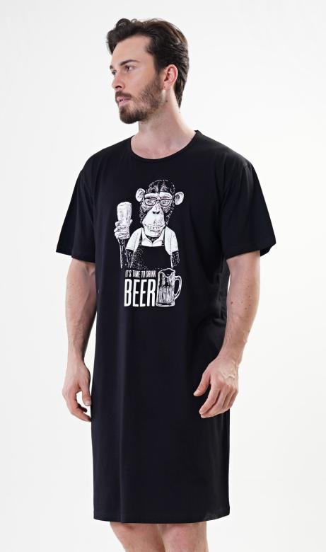 Pánská noční košile s krátkým rukávem a motivem opice držící pivo.