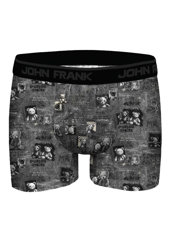Pánské boxerky John Frank z prémiového micro modalu zaujmou originálním potiskem s motivy plyšových medvídků v tmavém, lehce vintage stylu. Micro modal je mimořádně jemný, lehký a hebký materiál, který je velmi příjemný na dotek, skvěle prodyšný a efektivně odvádí vlhkost, takže zajišťuje maximální komfort po celý den. Boxerky mají pružný pas s logem značky John Frank, který dobře drží, nezařezává se a perfektně se přizpůsobí postavě. Díky elastickému složení materiálu boxerky skvěle sedí, drží tvar a ne…
