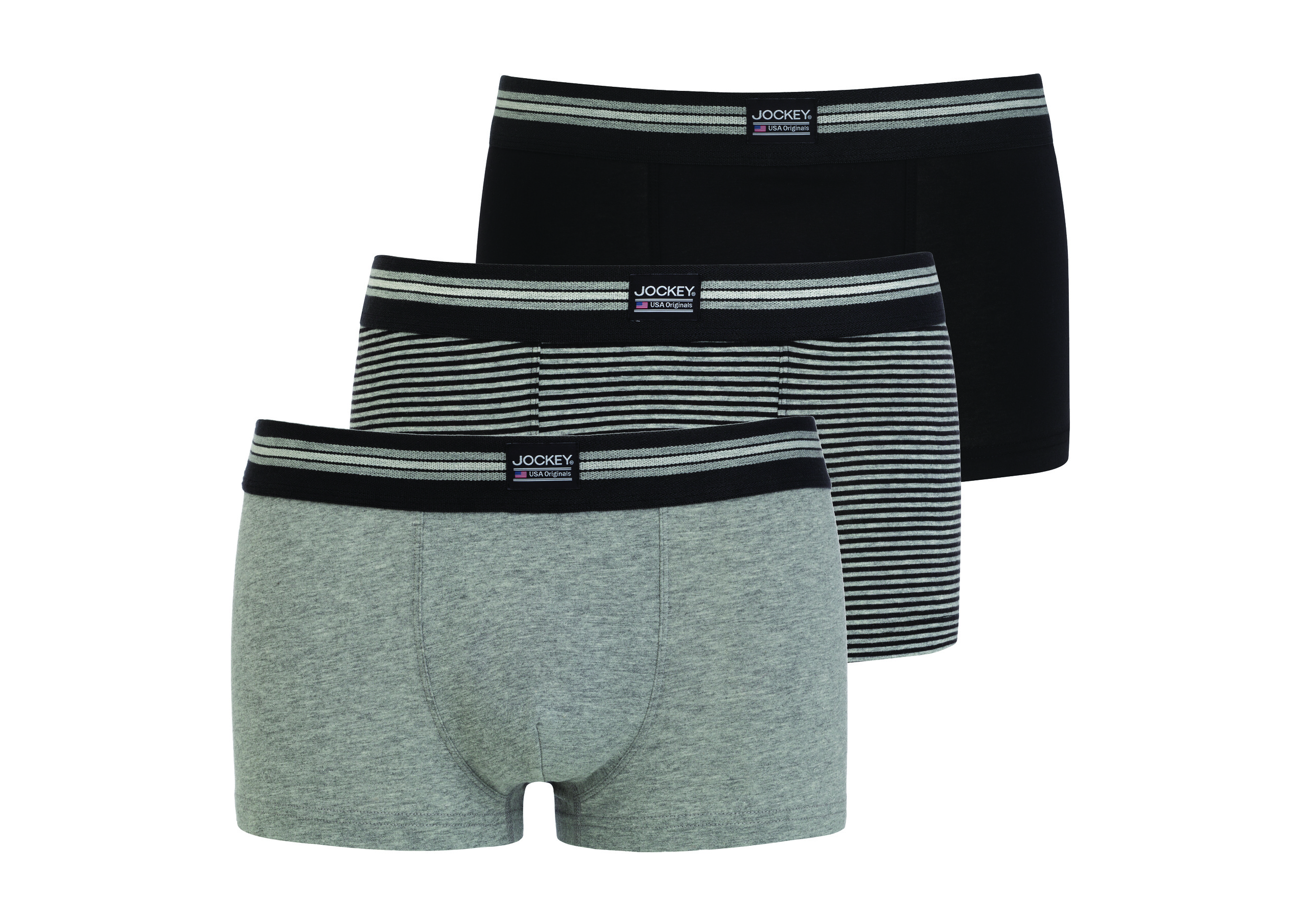 Pánské boxery JOCKEY jsou příjemné bavlněné v barvách černé, šedé a pruhované.