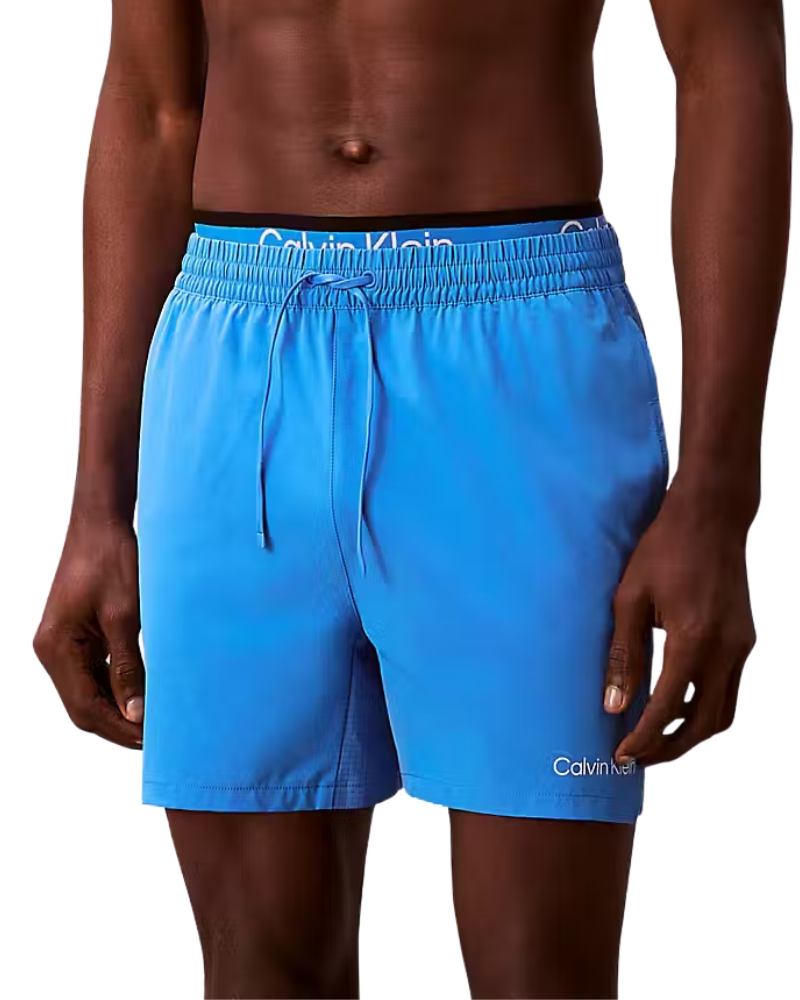 Plavky v modré barvě mají double waistband – dvojitý pásek v pase s fashion gumou Calvin Klein.