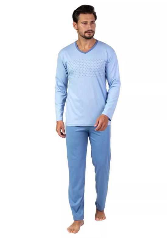 pánské pyžamo 468/41 REGINA představuje skvělou volbu pro pohodlné spaní i odpočinek doma. Pyžamo je zhotoveno z vysoce kvalitního 100% bavlněného úpletu, který zaručuje příjemný pocit na těle a dostatečnou prodyšnost. Vrchní díl disponuje dlouhým rukávem a výstřihem ve tvaru V s barevným lemem, který dodává celku elegantní vzhled. kalhoty jsou dlouhé, bez kapes a vybavené širokou gumou v pase pro maximální pohodlí. Celý komplet se vyznačuje vzorem, který zaujme svým decentním stylem. Tento typ dlouhý…