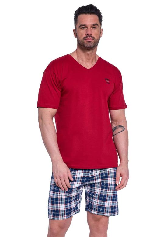 Pánské pyžamo značky Cornette je skvělou volbou pro muže, kteří si potrpí na kvalitu, pohodlí a styl. Pyžamo se skládá z vínového trička s krátkým rukávem a výstřihem do V, které je ozdobeno jemnou výšivkou na hrudi. K tričku patří pohodlné kraťasy s barevným kostkovaným vzorem, v pase doplněné širokou gumou lemovanou bavlnou. Pyžamo je vyrobeno z kvalitních materiálů – horní díl tvoří 80 % bavlny a 20 % polyesteru, kraťasy jsou ze 100% bavlny. Dodává se v elegantní dárkové krabičce a je ideálním tipem n…