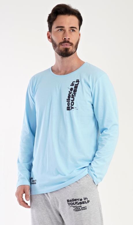 Pánské pyžamo má příjemné triko s dlouhými rukávy ze 100% bavlny a nápisem Believe in yourself (př. věř v sám sebe).
