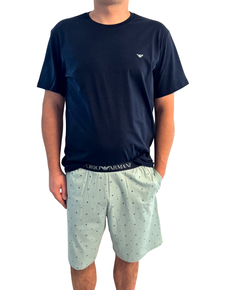 Pánské pyžamo má triko s krátkým rukávem a jemným logem Armani.