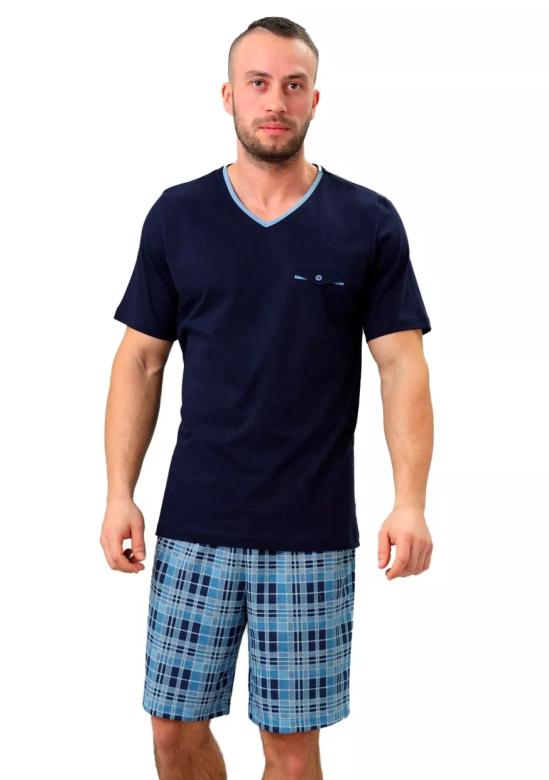 Pánské pyžamo Leon 710/02 HOTBERG představuje ideální volbu pro pohodlný odpočinek a příjemné spaní. Tričko se vyznačuje véčkovým výstřihem s barevným lemem, který dodává designu svěží nádech. Krátké rukávy a malá kapsa na prsou zajišťují praktičnost a zároveň stylový vzhled.