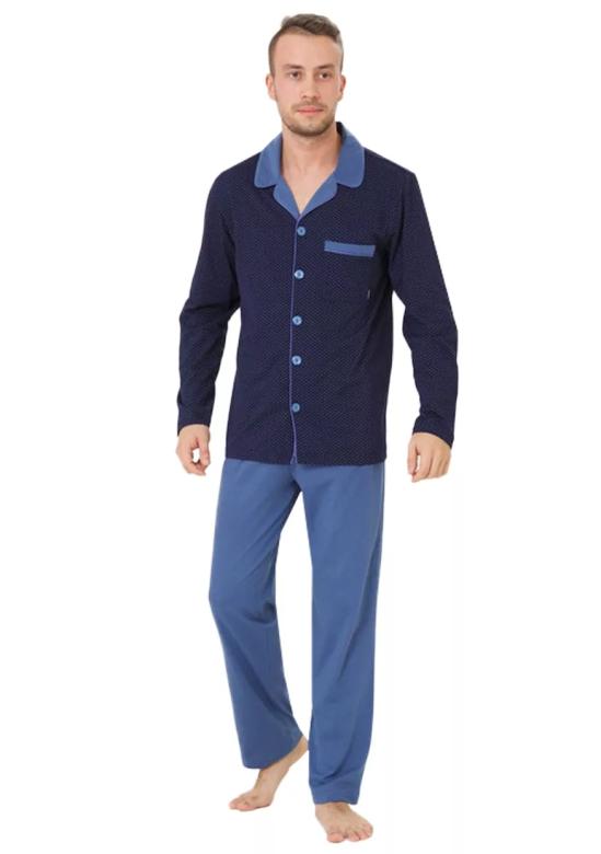 Pánské pyžamo Norbert 670/02 HOTBERG nabízí pohodlí a styl v jednom. Tento komplet s dlouhými kalhotami a kabátkem na rozepínání je ideální volbou pro klidné noci.