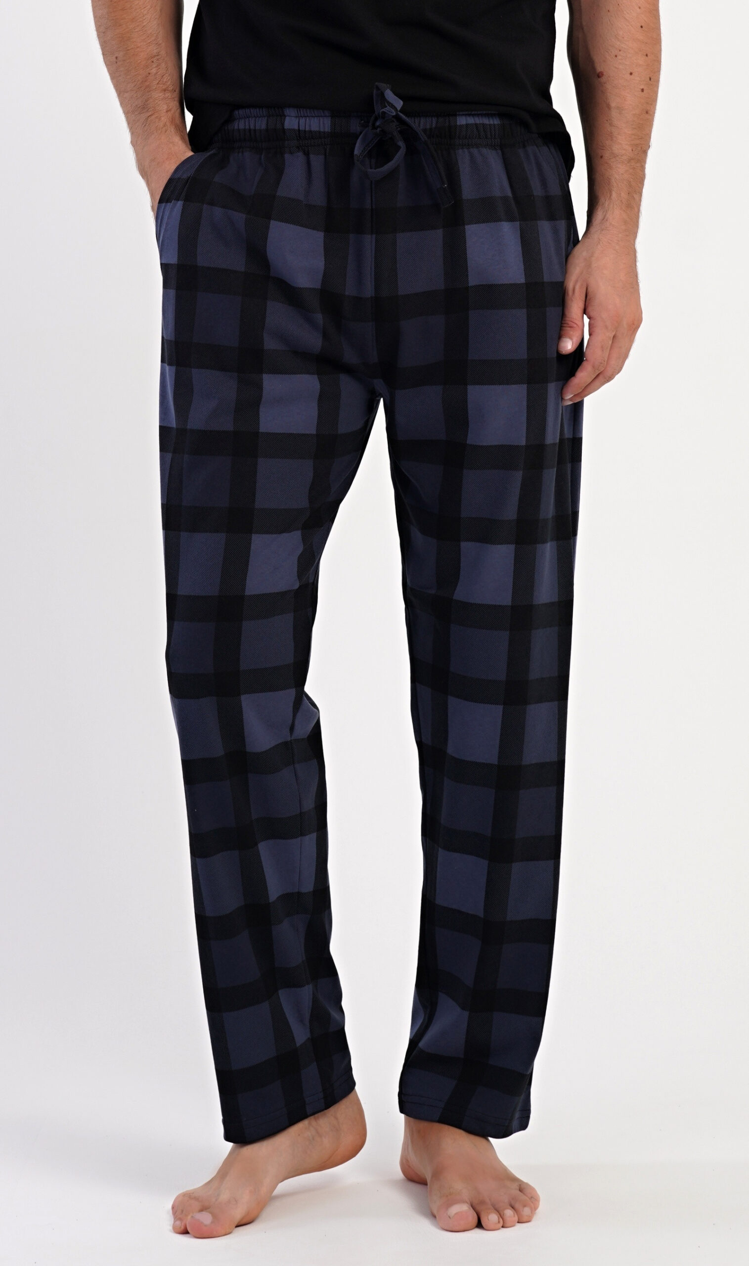 Pánské bavlněné pyžamové kalhoty Filip. Kostkované kalhoty mají v pase gumu, šňůrku na stažení a praktické kapsy. Mateiriál s podílem bavlny 100% je příjemný a poddajný na dotek.