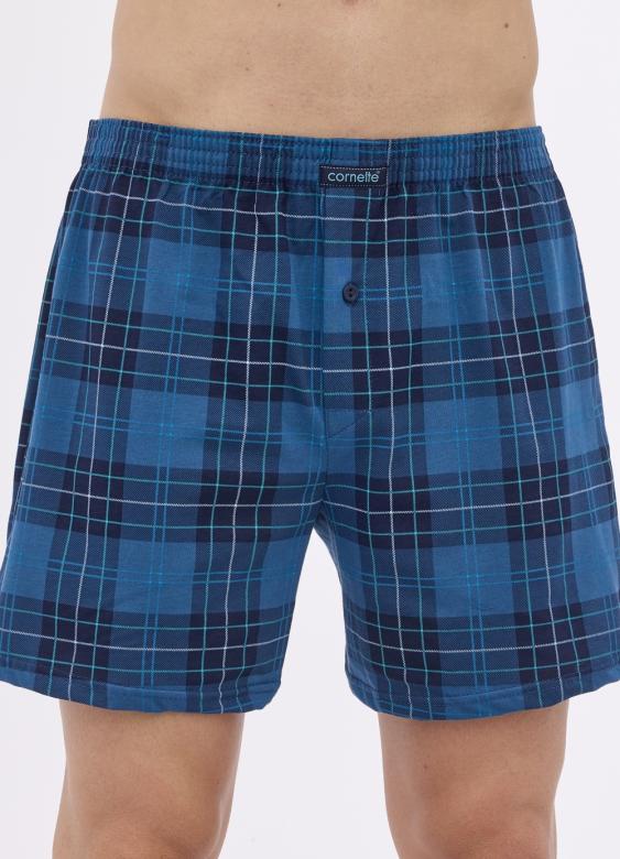 Bavlněné volné trenýrky od značky Cornette. Trenýrky mají obšitou gumu s nášivkou Cornette na přední části a propínání na knoflíček.