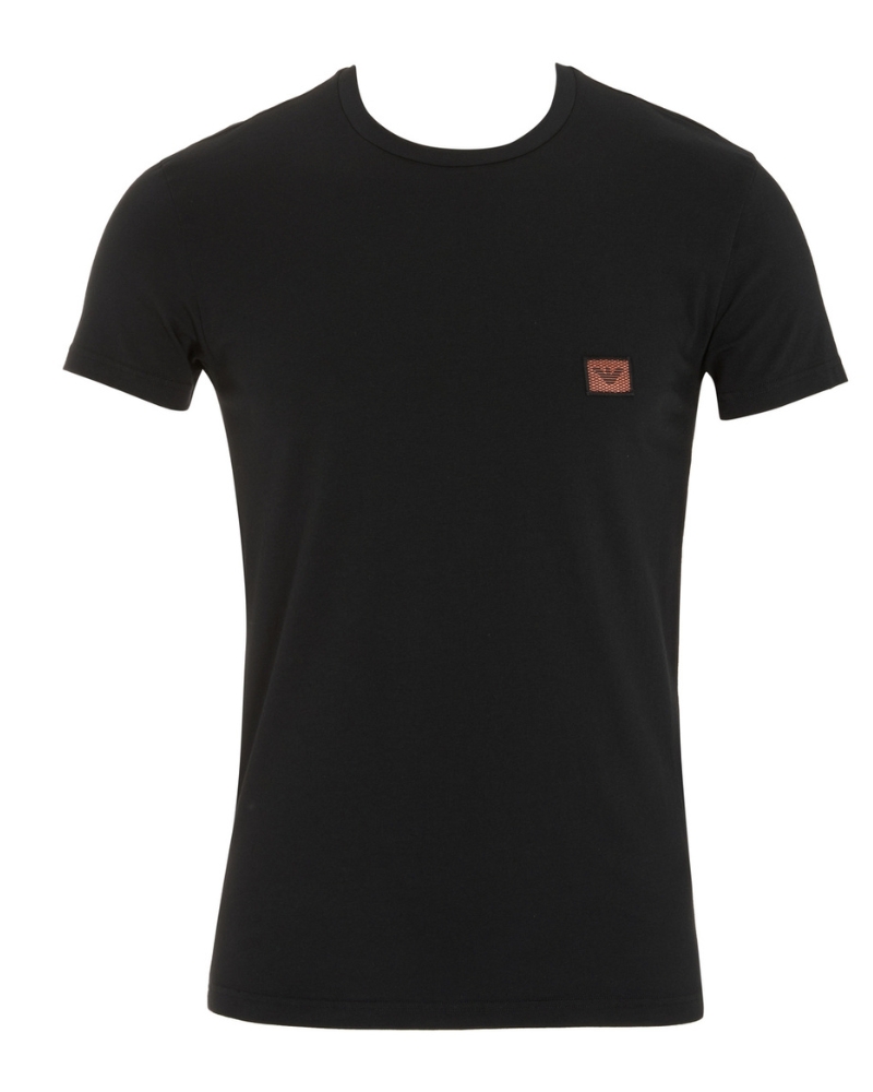 Triko s krátkým rukávem klasického střihu má v levé části decentní nášivku s logem značky Emporio Armani.
