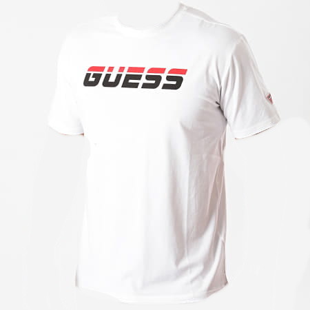 Kvalitní bavlněné pánské triko ve sportovním designu s efektním nápisem značky Guess v černo-červené barvě.