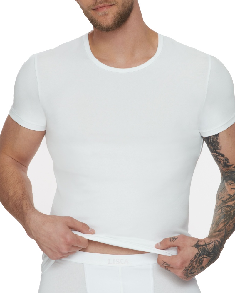 Pánské triko od značky Lisca se nabízí v bílé (01) nebo černé (02) barvě.