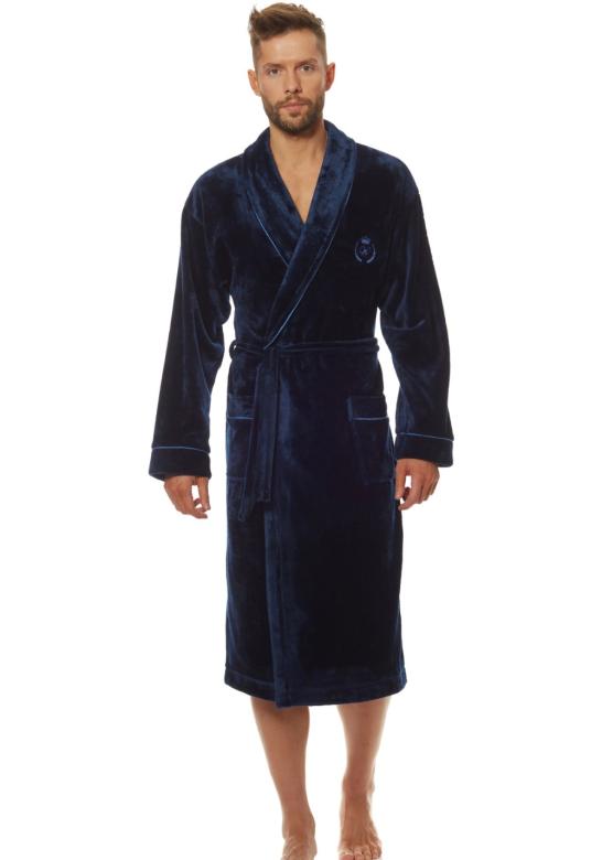 Krásný hřejivý župan s límcem a vázáním v pase značky LandL. Župan má na hrudníku výšivku, která dodává luxusní vzhled. Délka sahá pod kolena a po stranách má dvě kapsy. Ideální doplněk pro chladné zimní večery.