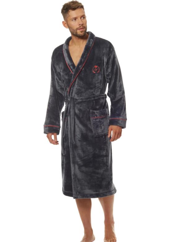 Krásný hřejivý župan s límcem a vázáním v pase. Župan má na hrudníku výšivku, která dodává luxusnímu vzhledu. Ideální doplněk pro chladné zimní večery.