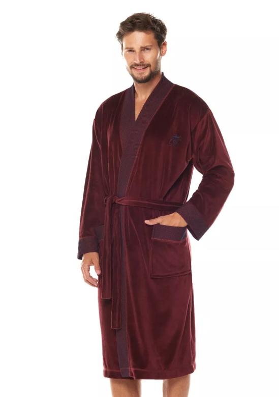 Pánský župan Royal bordo LandL v luxusním bordó odstínu nabízí dokonalý komfort díky použití měkkého a hebkého froté veluru. Tento dlouhý župan s límcem je ideální volbou pro chvíle odpočinku po náročném dni.