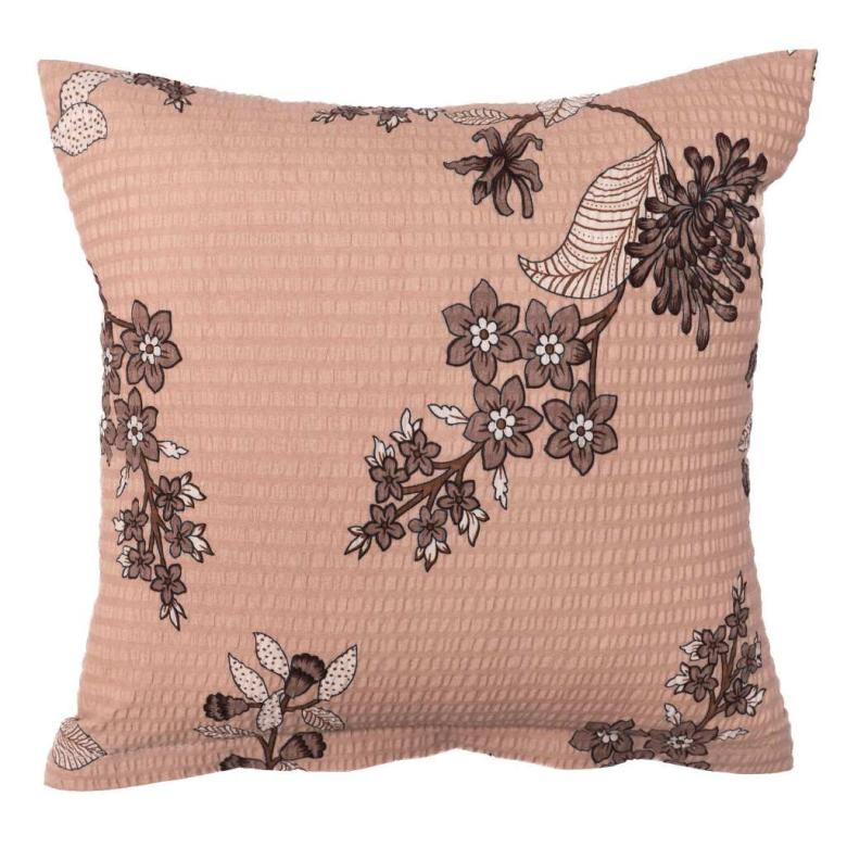 Stylový povlak na polštář Klaudie světle hnědá přináší do vaší ložnice příjemnou přírodní atmosféru. Jemný květinový motiv v odstínech hnědé a béžové na světle hnědém podkladu působí klidně a harmonicky – ideální pro interiéry laděné do zemitých a přírodních barev.