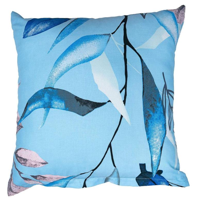 Stylový povlak na polštář Milaya modrá přináší do vaší ložnice svěží nádech přírody a moderní elegance. Světle modrý podklad zdobí akvarelový listový motiv v tónech modré, tyrkysové, bílé a jemné růžové, který působí vzdušně a harmonicky.