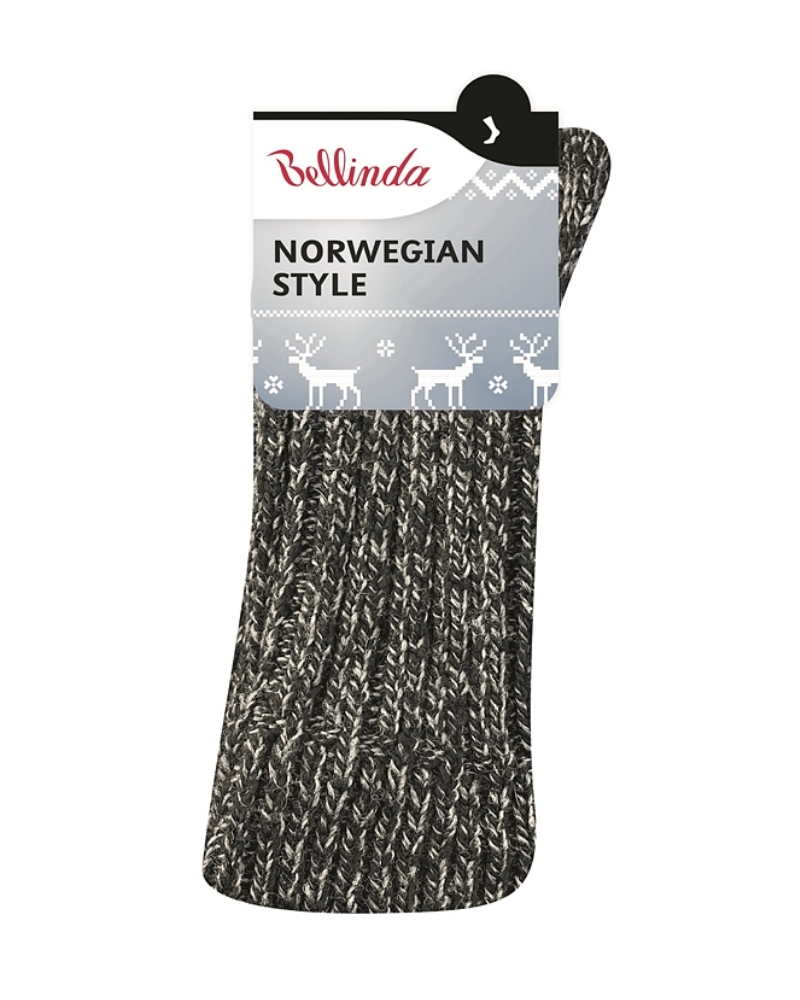 Velmi teplé ponožky díky obsahu vlny (norského typu). Široké proužky. Pletený zimní vzhled v atraktivních melírovaných barvách.